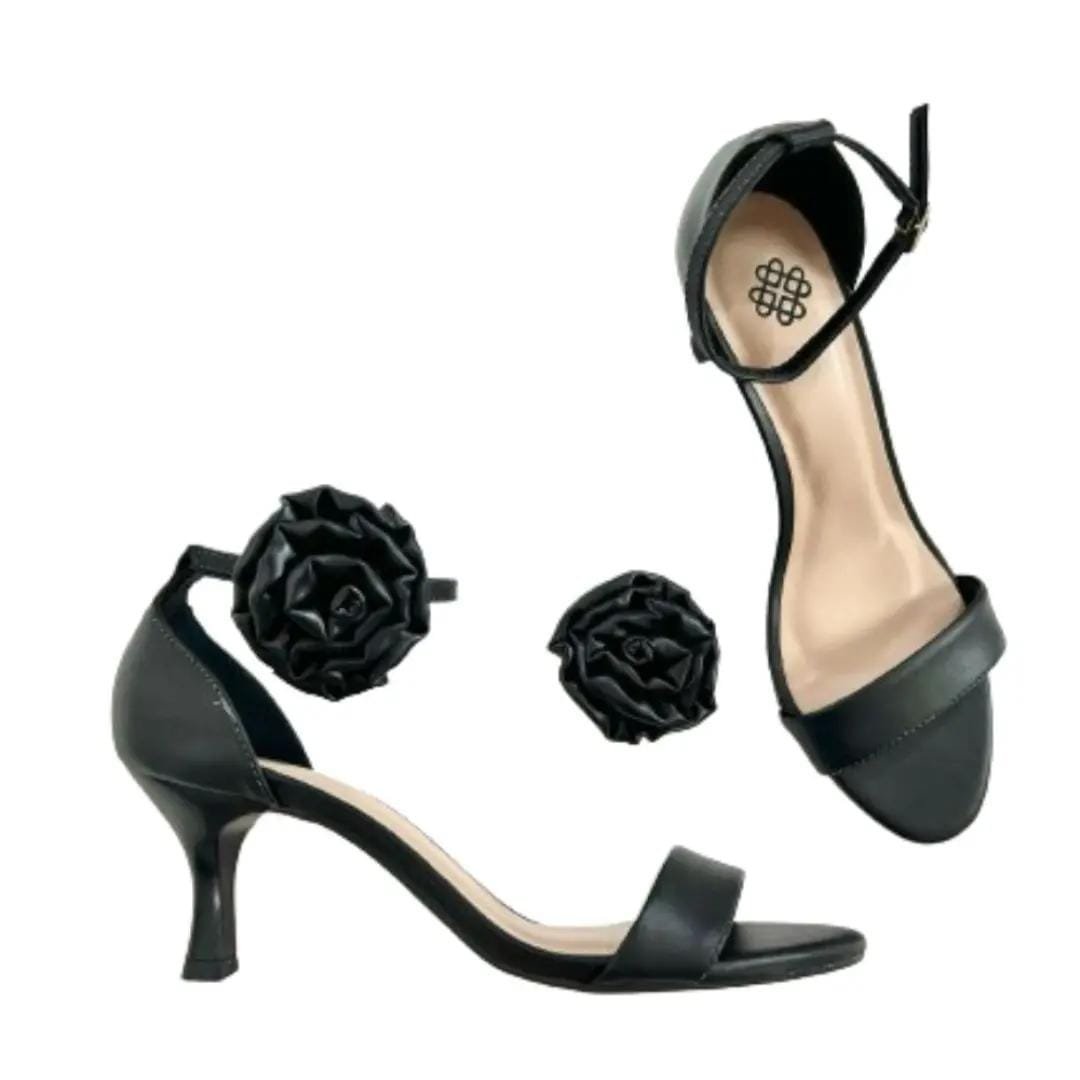 Sandália flor salto fino preta